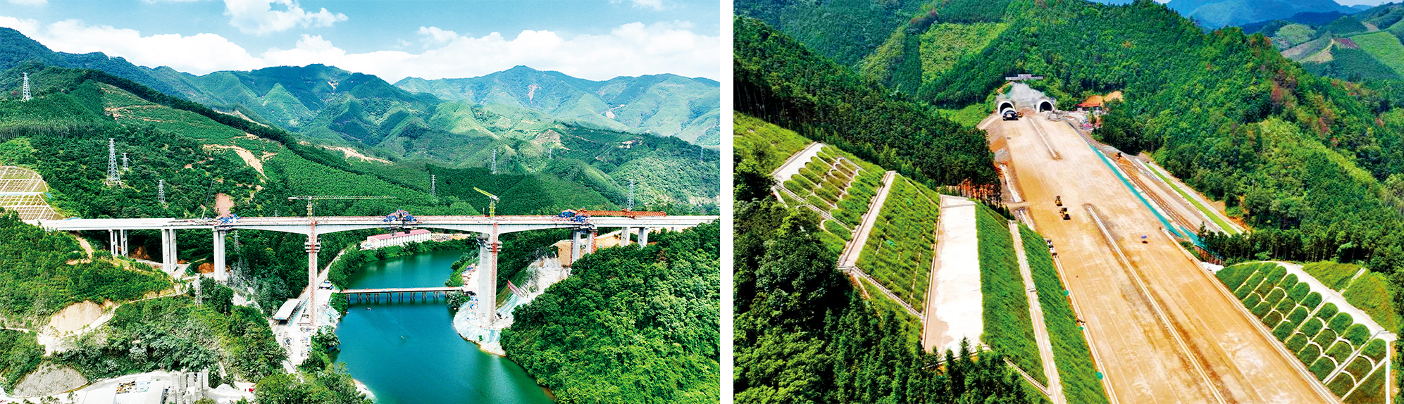 公司團隊在設計中加強科研創(chuàng)新,應用了高品質耐候鋼、植被混凝土、納米碳酸鈣混凝土、分布式太陽能光伏板等多項新材料,同時應用了邊坡柔性支護生態(tài)修復、新型鋼箱結構橋梁、低能耗橋面徑流收集系統(tǒng)、基于“北斗”的邊坡地質災害監(jiān)測預警系統(tǒng)等多項新技術,為建設中采用全回旋套筒螺旋鉆成樁、剛構橋邊中跨同步合攏、混凝土護欄底部外包、多雨地區(qū)路基快速化鋪筑等多項新工藝提供了全面的技術支持,確保了項目順利建成。