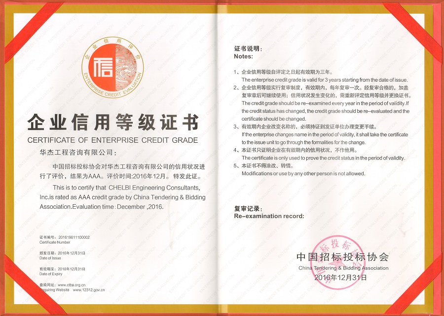 2017年1月19日,中國招標投標協會首批會員企業信用評價總結暨授牌儀式在北京舉辦,我公司榮獲最高評級“企業信用評價AAA級信用企業”稱號。