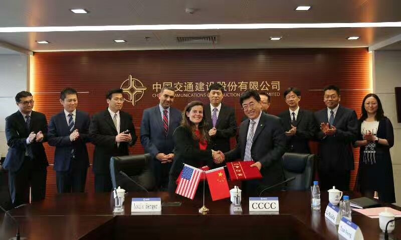 董事會期間,伯杰集團高級副總裁索菲亞·伯杰(Sofia Berger)女士一行在裴岷山董事長的陪同下,拜訪了中國交建總裁陳奮健先生、副總裁孫子宇先生,續簽了《全球戰略合作協議》,繼續加強雙方在國際市場的合作,利用各自優勢進行資源整合,在國際市場上實現合作與創新共贏。